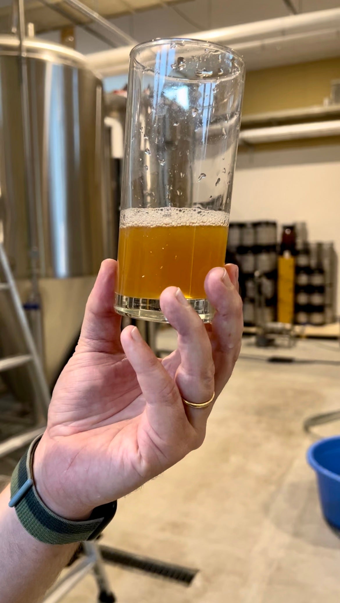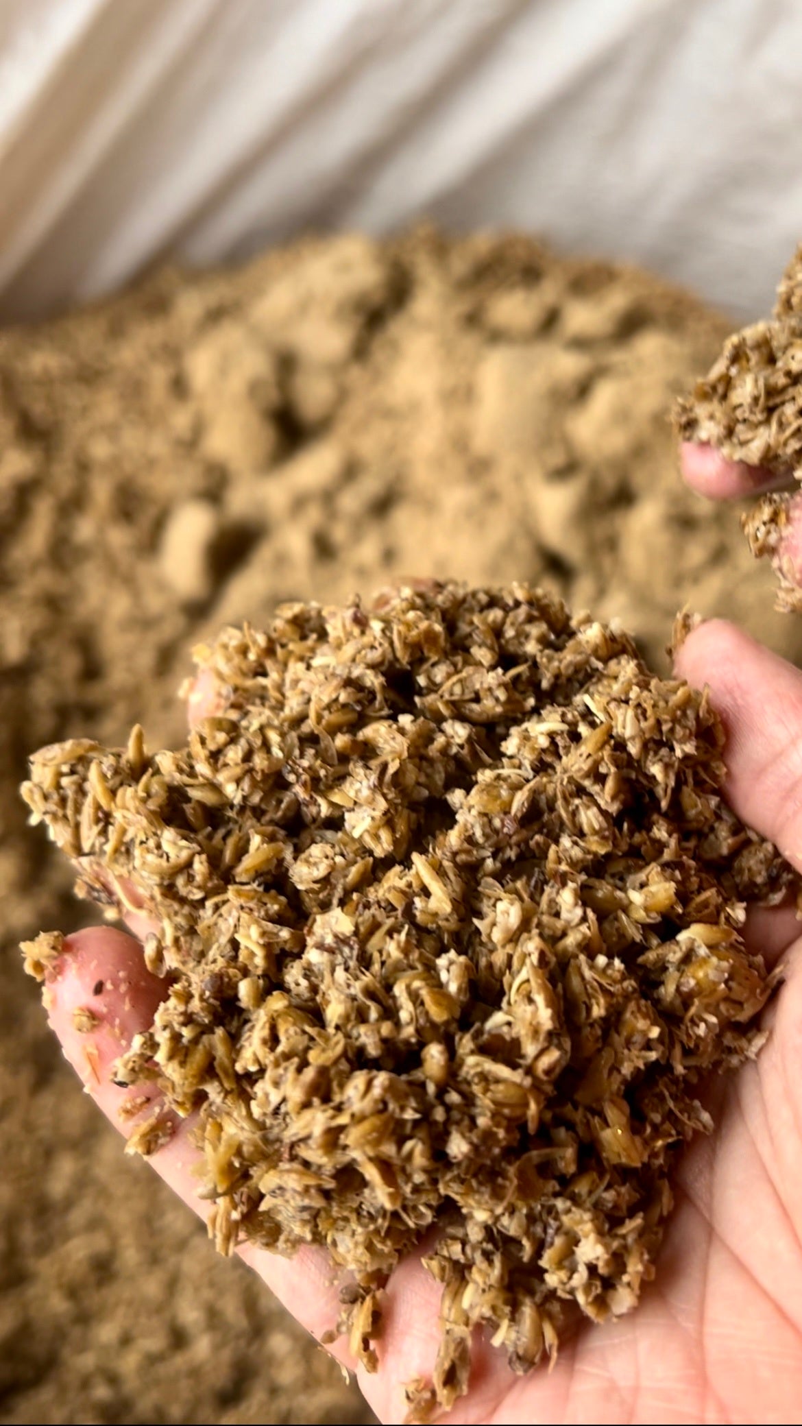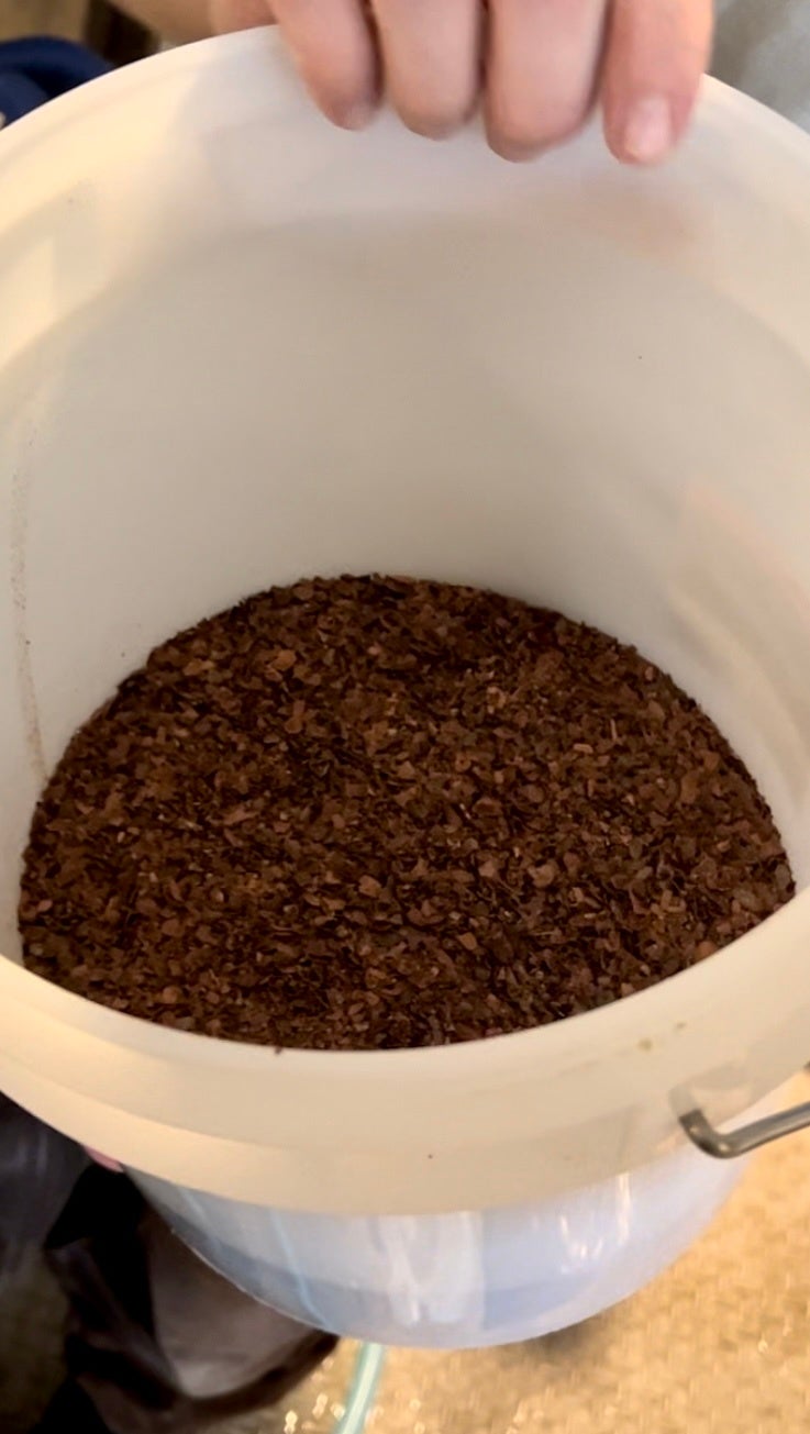 絞りかすの中にカカオ皮が混ざっている様子この後、酵母を投入し、あとは発酵・熟成を待つのみです。どんなビールになるかは、まだ想像しかありません。