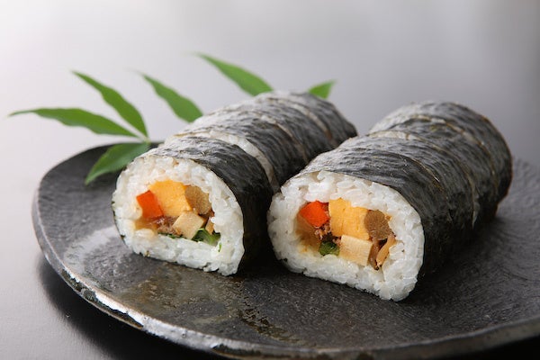 この2つ以外にも、人参、椎茸、干瓢、高野豆腐、厚焼き玉子、小松菜が使用されており、8種類の具沢山な巻き寿司となっています。