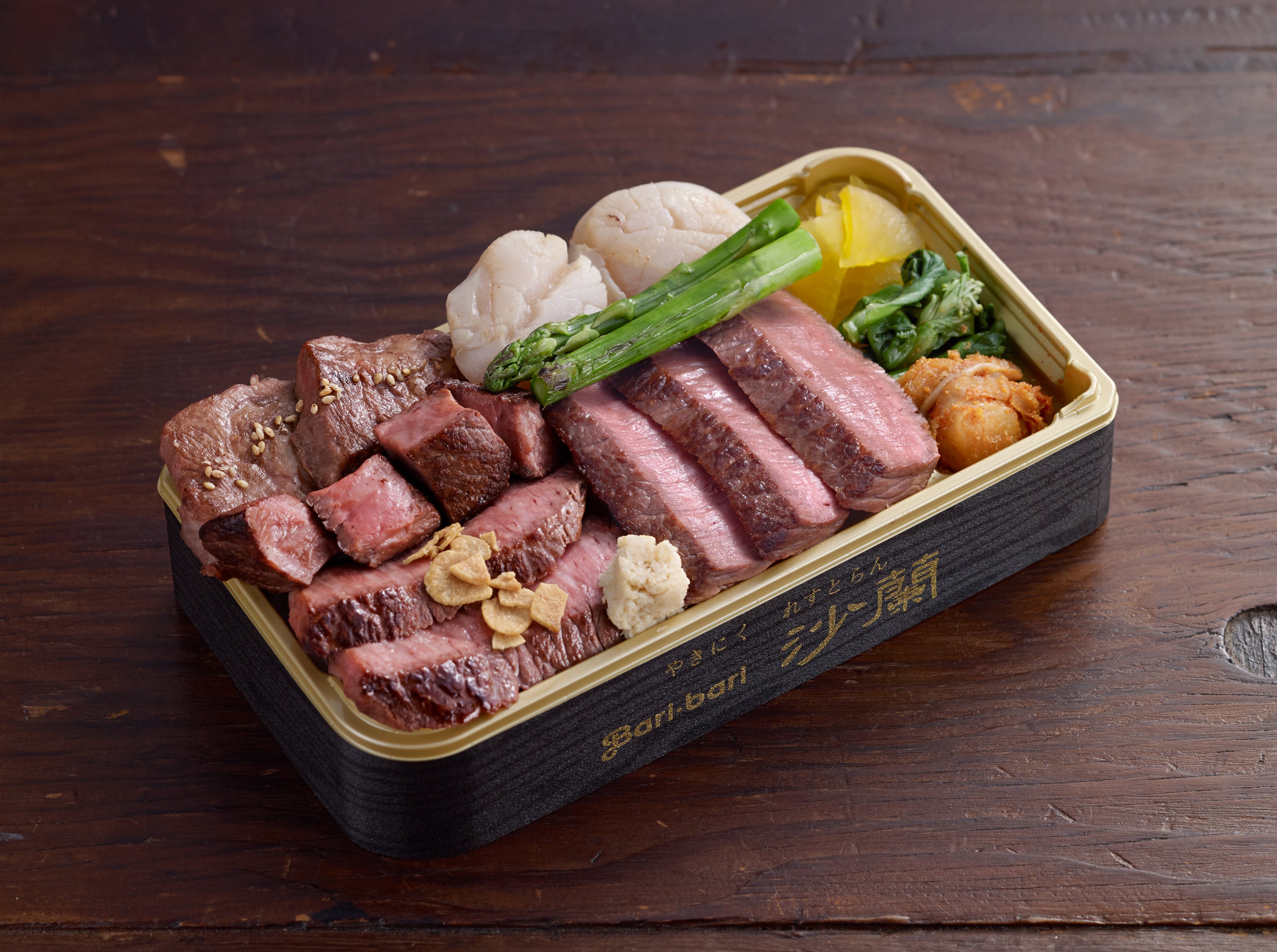 ・はこだて大沼黒牛、ふらの和牛、道産牛のステーキ盛り合わせ弁当(1折)2,700円 ※各日限定50折