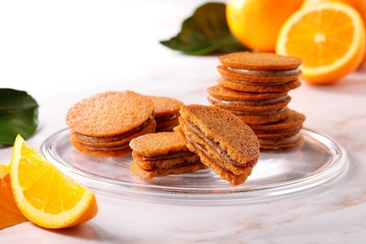 オバケ自慢のキャラメルと、甘酸っぱくほろ苦いオレンジが相性抜群!オレンジピールを混ぜ込んだクッキーでキャラメルチョコレートをサンドした、食べるほどにひろがる爽やかなオレンジの風味をお楽しみいただける夏にオススメの逸品です。