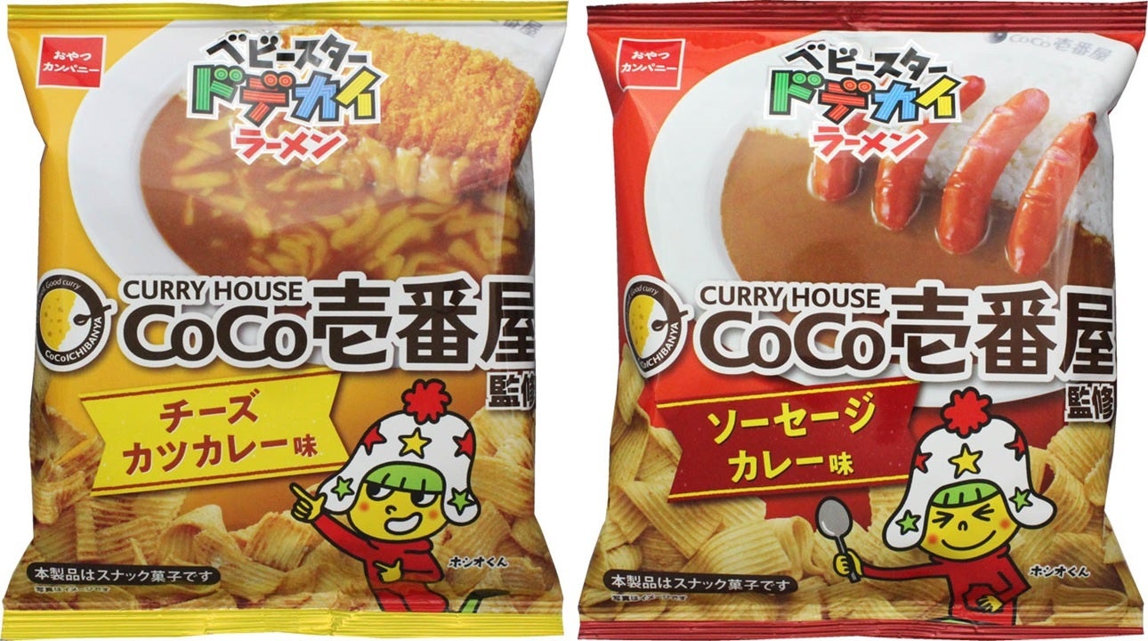商品名:ベビースタードデカイラーメン(CoCo壱番屋監修 チーズカツカレー味)※画像左