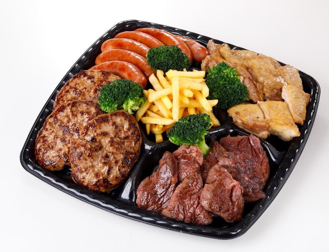商品:オードブル(ひとくちてっぱんステーキ150g、自家製ハンバーグ120g×3、