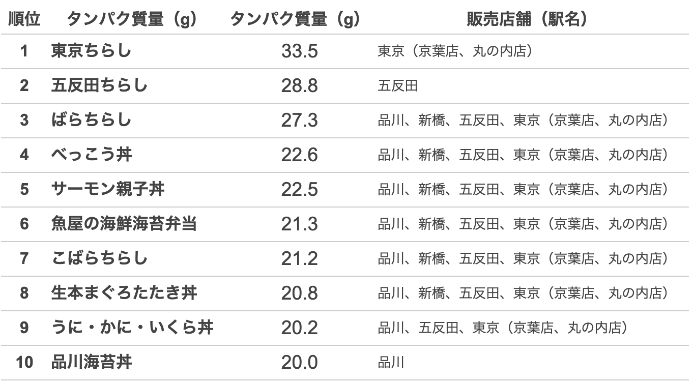 ■魚弁当タンパク質ランキング概要 駅ナカ限定