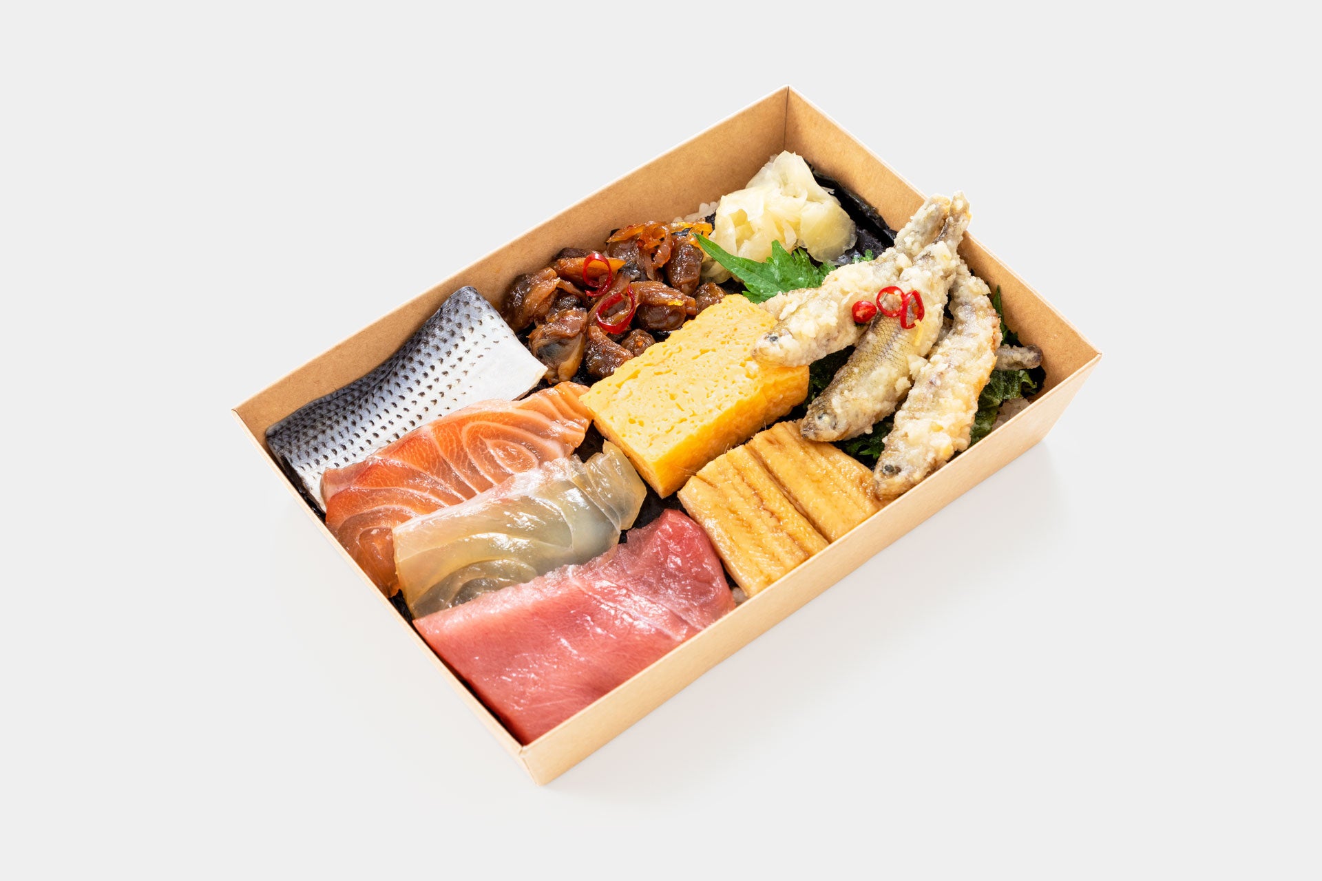 具材の多さからご飯が進みすぎるとの声を多数いただき、SNSでも話題になった魚屋が作った海苔弁当。東京の魚屋らしい手仕事を加えた白身魚の他、煮アサリやコハダ、生本マグロなどバラエティに富んだ海鮮を東京蒲田守半の海苔が引き立てる魚屋ならではの海苔弁当です。