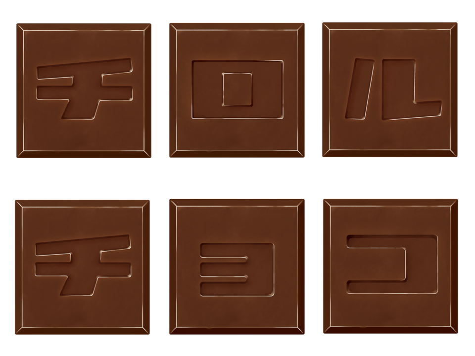 チョコレートの天面には「チ」「ロ」「ル」「チ」「ョ」「コ」の文字が書かれています。