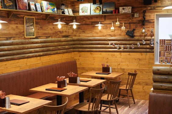 山小屋風の店内から外を見渡せば、街を行きかう人々はまるでせわしく険しい山を登っているよう。そんな風景を目の前に、クオリティにこだわった厚切りレアステーキと、温かみのある空間で疲れをいやし、日々の元気をチャージしてもらいたいと誕生したのが『ステーキロッヂ』です。