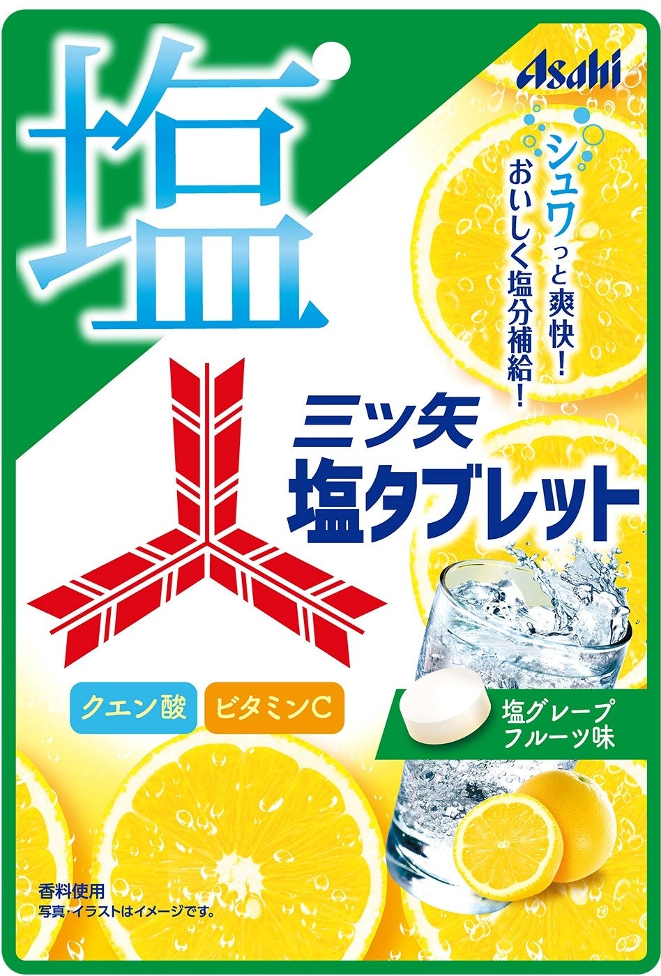 アサヒグループ食品株式会社(本社 東京、社長 川原浩)は、塩分補給ができるタブレット『三ツ矢塩タブレット』を5月22日から発売します。