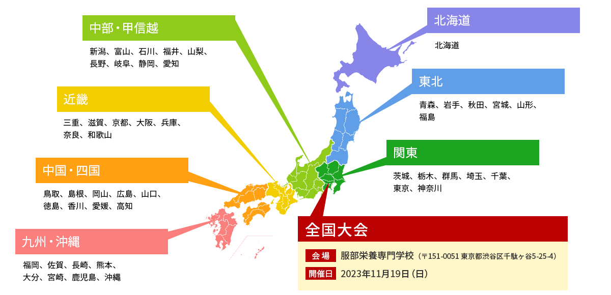 実行委員会形式※2で運営し、これまで全国5ブロック(北海道・東北、関東・甲信越、近畿・北陸・中部、中国・四国、九州・沖縄)に分けて実施してきました。今回はこれを見直します。具体的には北海道と東北を分割するとともに、関東から甲信越、近畿から北陸をそれぞれ中部に集約して7ブロック制(北海道、東北、関東、中部・甲信越、近畿、中国・四国、九州・沖縄)に再編成します。書類審査などによる予選を行い、各ブロックから2チームの計14チームを選出。また、応募数が多かったブロックから1チームを特別枠として選び計15チームが全国大会に出場します。全国大会は11月下旬に東京都内で開き、グランプリと準グランプリを決定します。グランプリには賞金50万円を授与し、上位入賞には商品化に向けたサポートを実施する予定です。