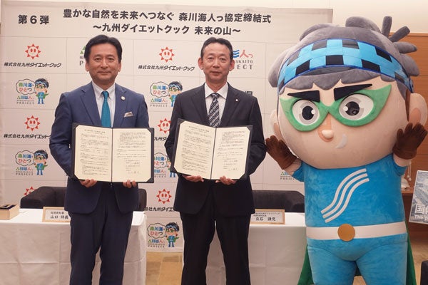 『森川海人っプロジェクト』は、有明海と玄海に面し、山や川が人々の身近にある佐賀県における、豊かな「森・川・海」を人の手で未来につなぐための取り組みです。佐賀県は、その理念に共感し、協働する地元企業や団体と、森林環境保全に関する『森川海人っ協定』を締結しています。九州DCは6例目となり、食品メーカーの本協定の締結は初めてです。今回の協定により九州DCは、「佐賀県立21世紀県民の森」の約3,800平方メートルを「九州ダイエットクック 未来の山」として、2023年4月から2033年3月の10年間、定期的に除伐、植林、下刈りなどの保全整備を実施します。「佐賀県立21世紀県民の森」は、佐賀県が所有する、バーベキュー場や湖畔のキャンプ場、サイクリングロードなど緑を満喫できる施設です。遊歩道は紅葉を楽しみに訪れる観光客も多い人気の土地であり、この活動で景観の向上・環境保全を目指していきます。