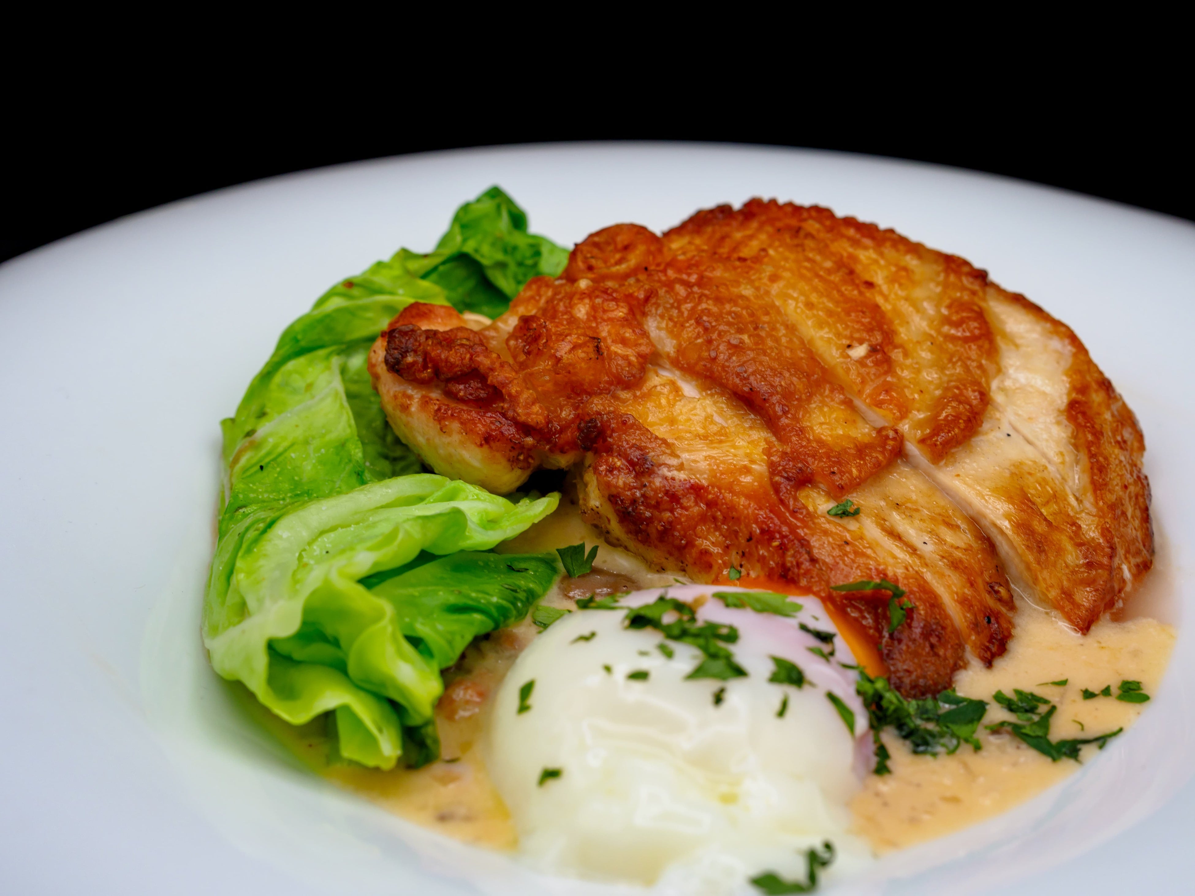 川俣軍鶏胸肉のロースト モリーユ茸のクリームソース