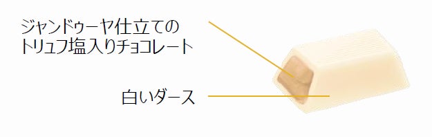 ヘーゼルナッツペーストを使用したジャンドゥーヤ仕立てのチョコレートにトリュフ塩を練りこんだプレミアムな白いダース。