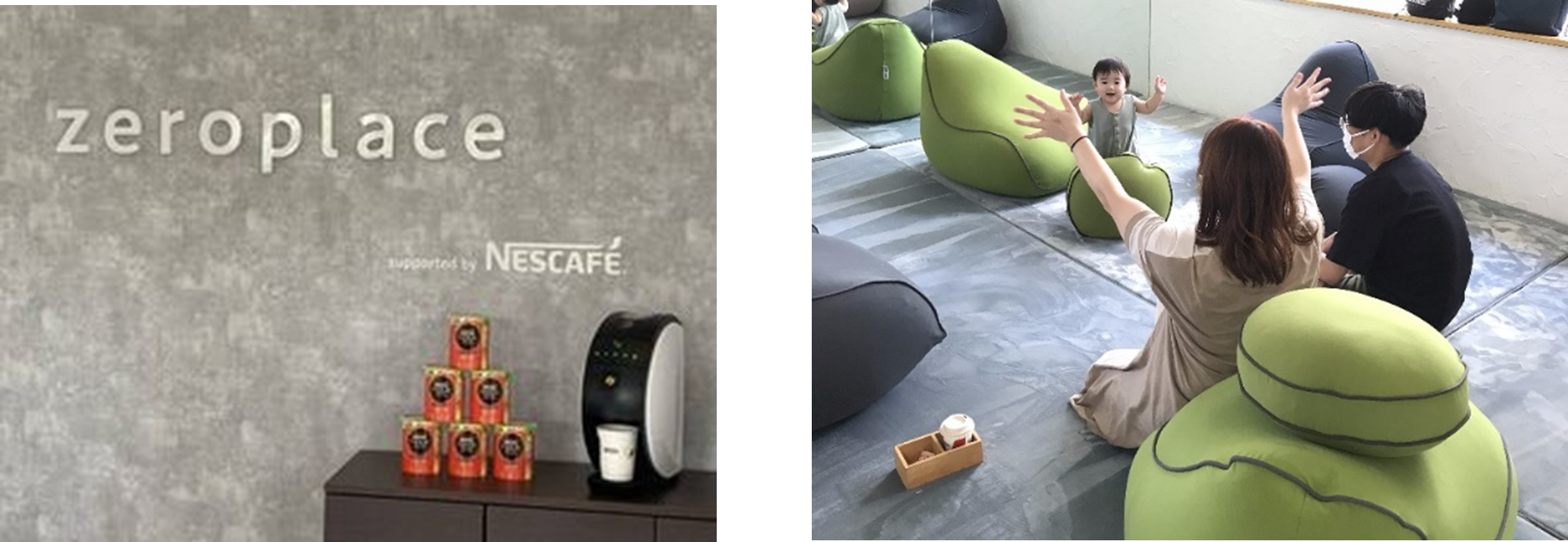 「ネスカフェ」のコーヒーを始めとした飲み物だけでなく、快適な座り心地が話題のビーズソファ“Yogibo(ヨギボー)”の”Yogibo Mini(ヨギボーミニ)”を設置したLoungeエリアを併設しているので、産後ケアが必要なママ以外にも、妊婦さん、パパをはじめとしたパートナーやご家族など、子育てに関わる幅広い人々がゆったり過ごせる空間となっています。