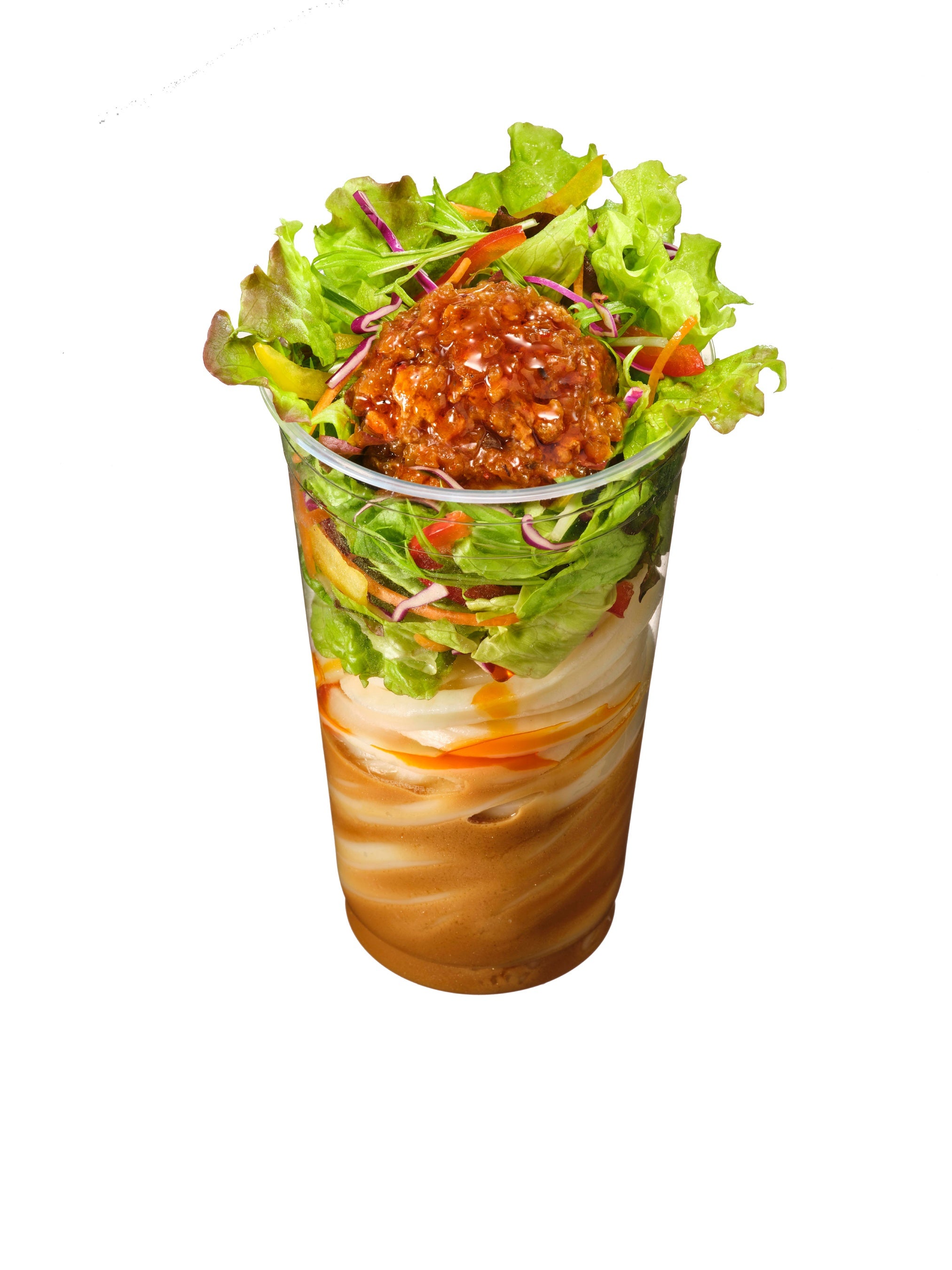 丸亀製麺のお持ち帰りでは初となるサラダと打ち立てうどんをカップ仕立てに。