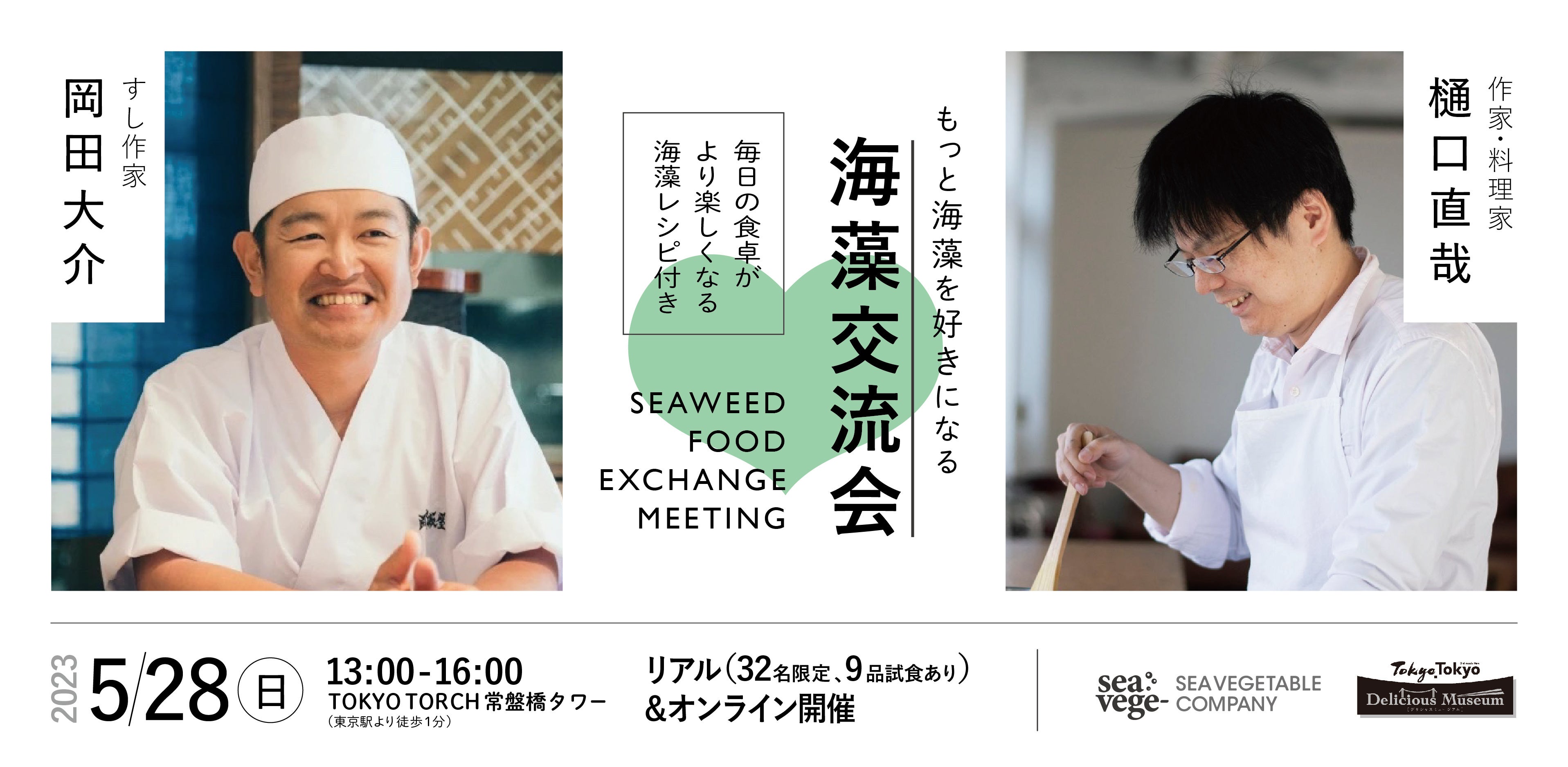 今回は『Tokyo Tokyo Delicious Museum』とのコラボレーションの中で、海の環境変化や未利用資源としての海藻の価値についてのお話と、海藻料理の試食を楽しめるトークセッションおよび、料理のデモンストレーションを開催いたします。