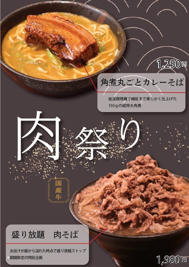 『角煮丸ごとカレーそば』『盛り放題 肉そば』どちらもこの機会にぜひご賞味ください!