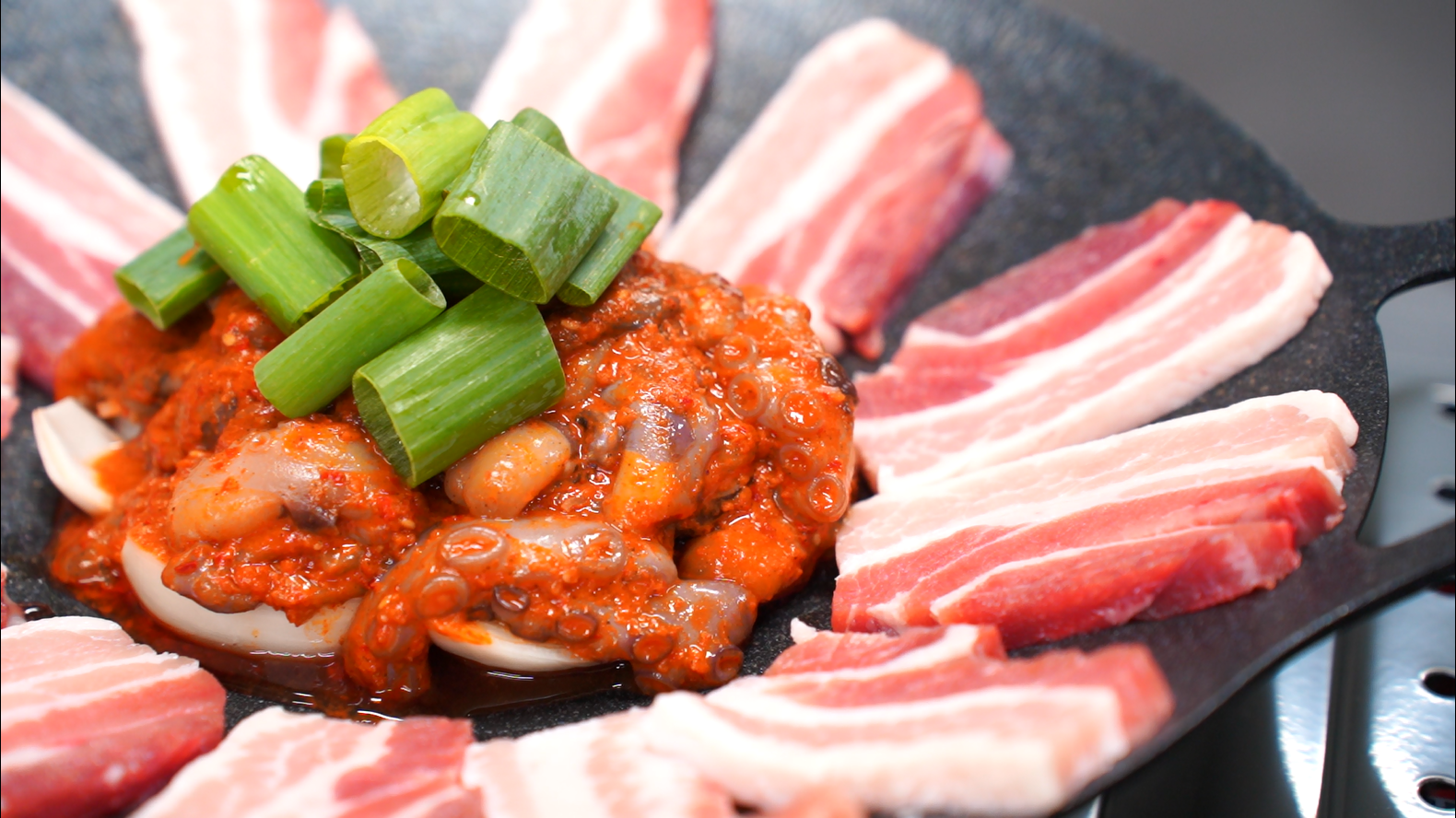 また、移転に併せた新メニューとして「さんさん亭」初となるチュクミ(イイダコ)を取り入れた”チュクミサムギョプサル食べ放題”(90分、2,800円~)をスタートします。「さんさん亭」独自のタレが創りだすチュクミの旨味と柔らかな食感を是非お楽しみください。