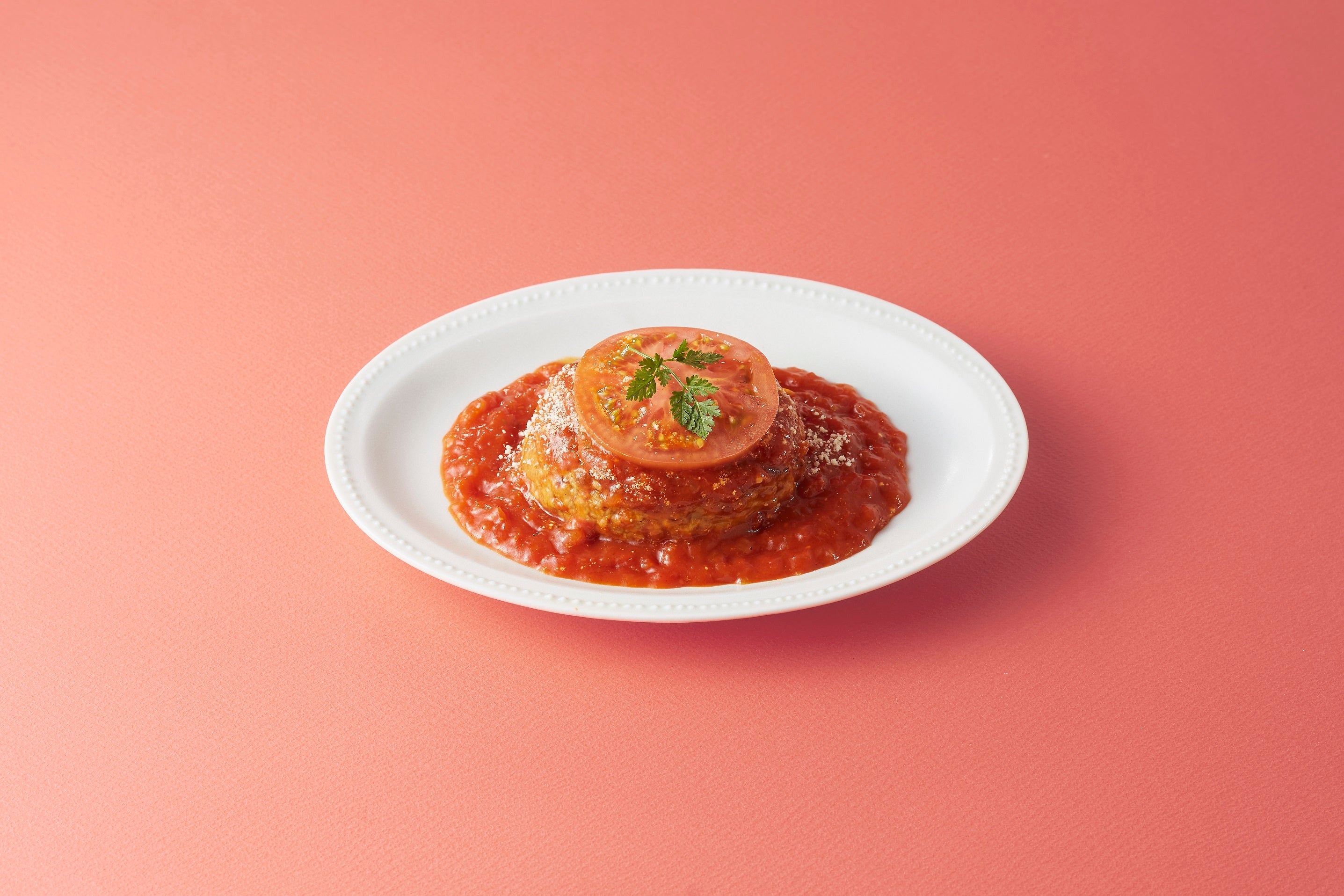 「アイズデリ」完熟トマトソースの極厚ハンバーグステーキ~フレッシュトマトのせ~(1個)594円