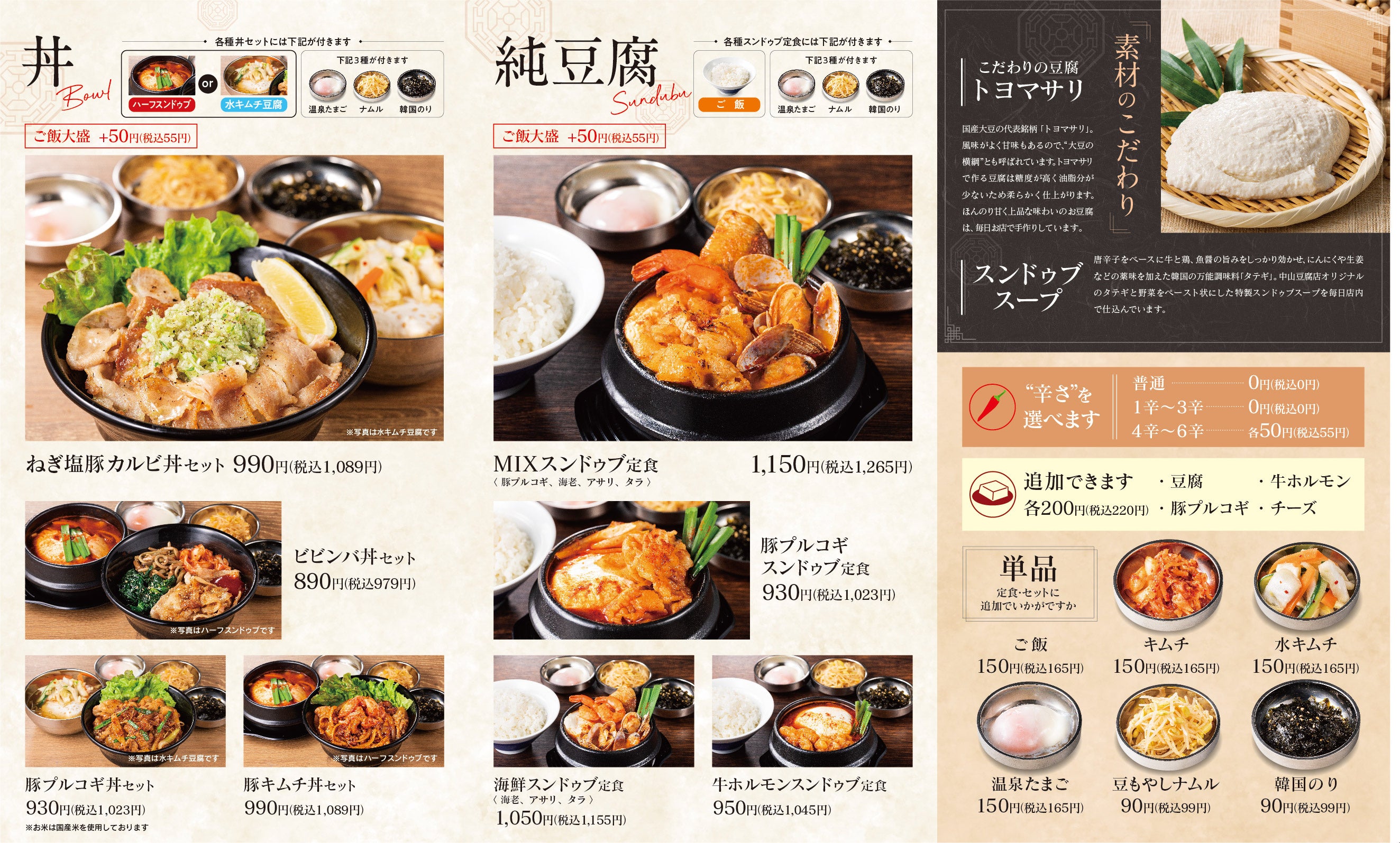(ハーフスンドゥブもしくは水キムチ豆腐がお選びいただけます)