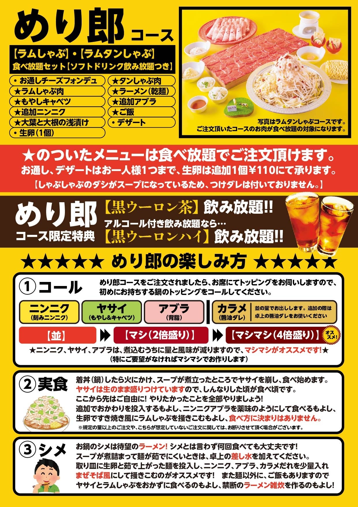 ※めり郎のみ黒ウーロン茶(黒ウーロンハイ)飲み放題!