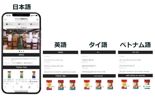 国内のタイ・ベトナムレストランではタイ・ベトナム語を母国語とするオーナーやシェフも多く、レストラン側のニーズに応え、日本語、英語だけではなくタイ語、ベトナム語の4か国語で間違えることなく発注ができるという 利便性が登録店舗数の牽引につながっています。