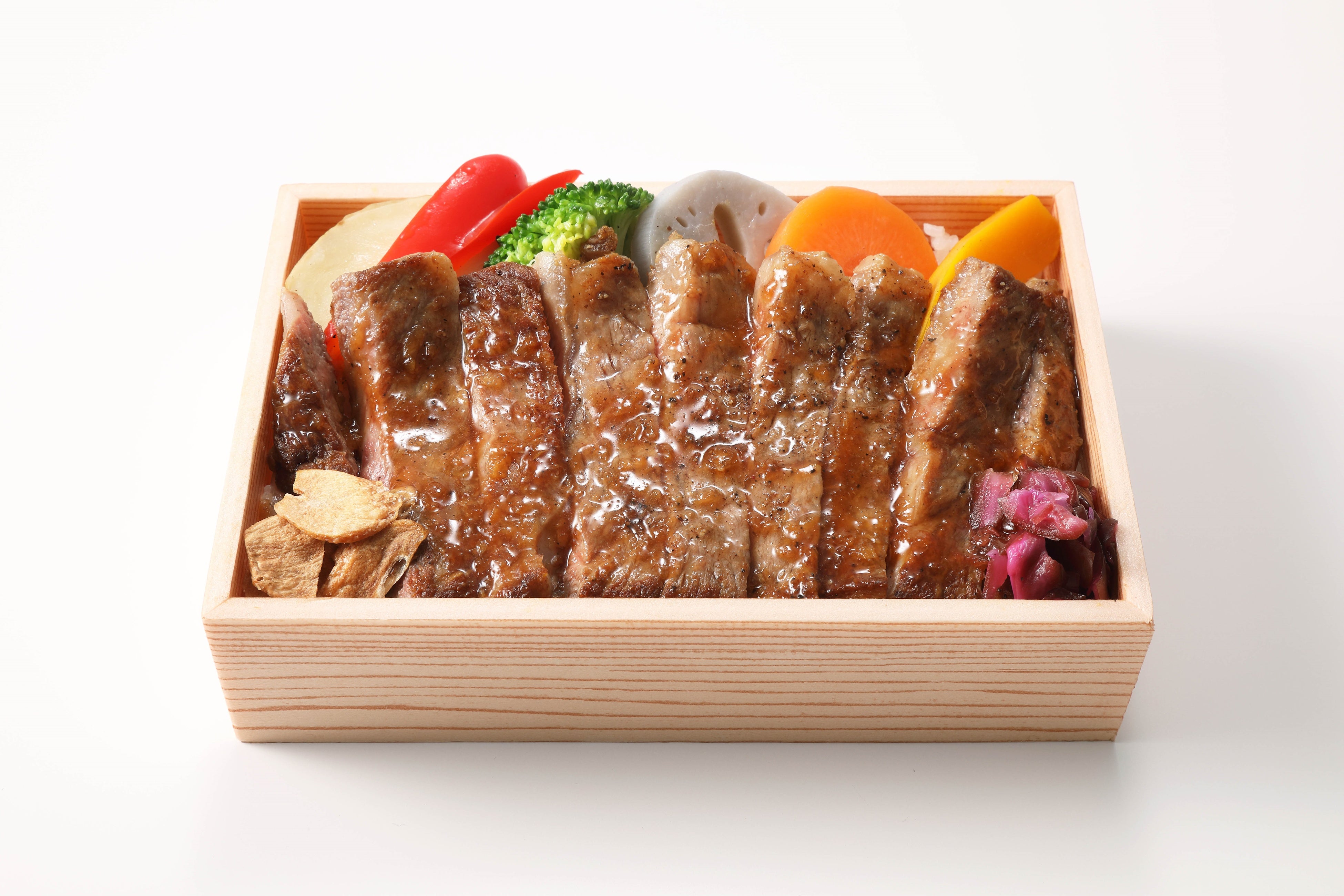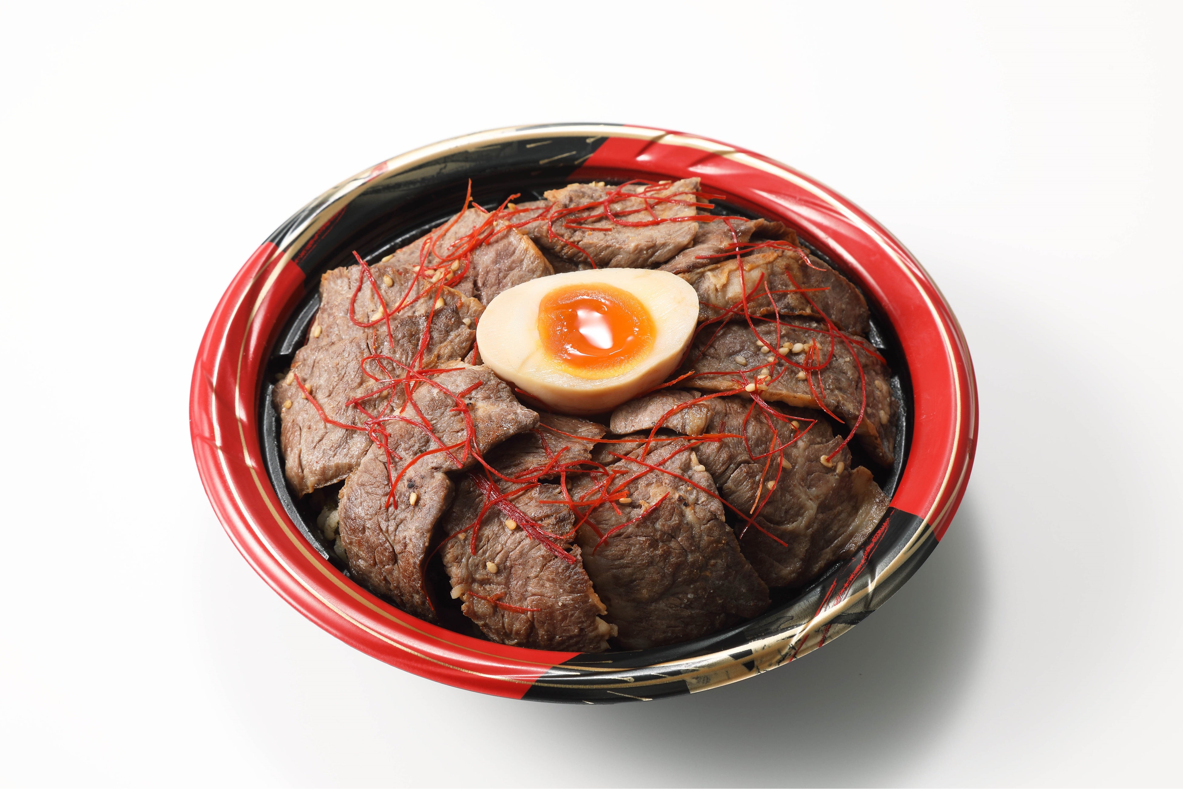 国内産黒毛和牛の牛丼の上にサーロインステーキをトッピング。ボリューム満点の仕上がりです。