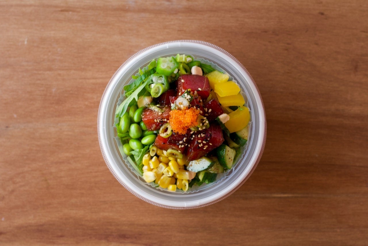〈マチヤキッチン〉マグロのハワイアンポキ(径12.9cm)898円