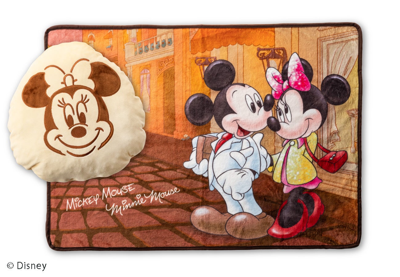 白のタキシードを着た「ミッキーマウス」と、ピンク色のワンピースにコートをはおった「ミニーマウス」がとってもキュート。ふたりはこれからデートへ?永遠の恋人である2人を描いた、ハートウォーミングなパッケージになりました。キラキラ輝く街の様子や2人の笑顔に、お互いを想う優しさがあふれて、思わずキュンとする可愛いさです。パッケージとお揃いデザインのブランケットにくるまりながら、ふわふわのクッションと一緒に美味しいケーキをめしあがれ!