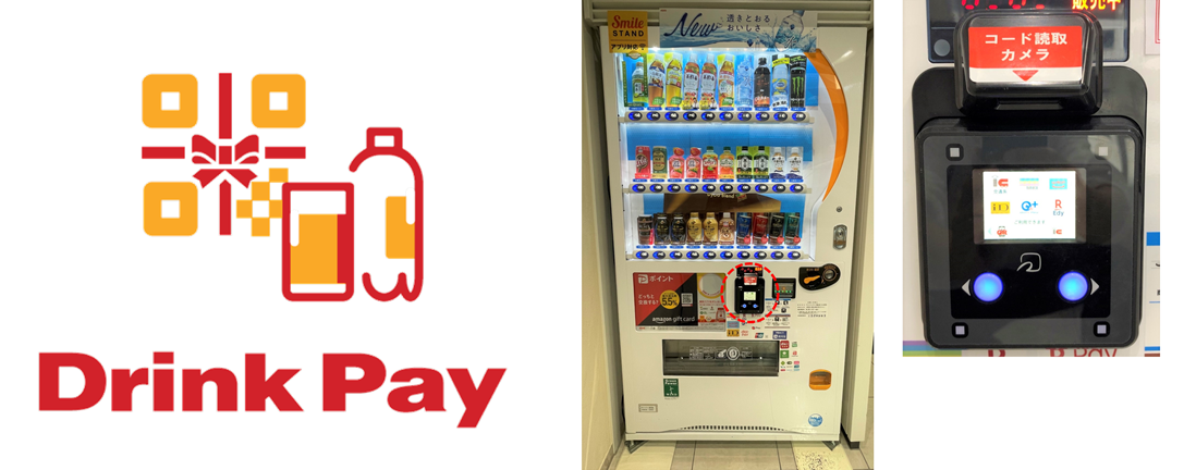 この度、開始するサービス「Drink Pay」は、自販機をご利用の際に、あらかじめ印刷もしくはスマートフォンで表示したQRコードを自販機に取り付けた読み取りカメラにかざすことで飲料購入が可能になるというものです。