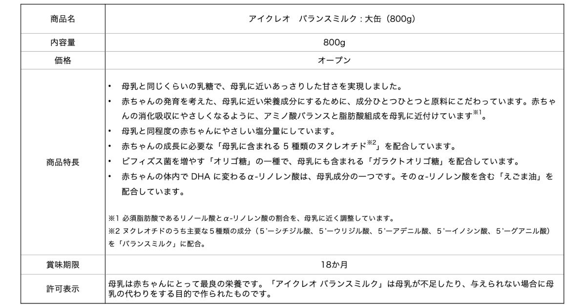 なお、2020年には、「アイクレオ バランスミルク」「アイクレオ 赤ちゃんミルク」の2品において、“マザーズセレクション大賞”を受賞しています。