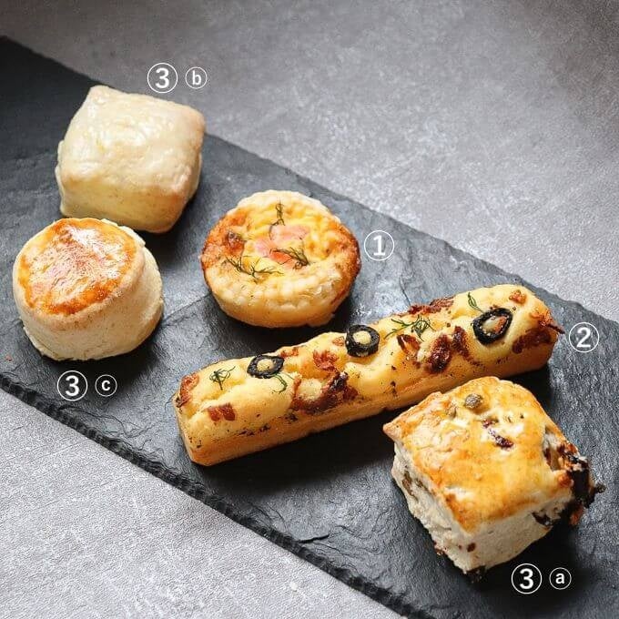 ②ケーク・サレ(アンチョビ・オリーブ・クリームチーズ) 100点限り 540円(1個/日本製)