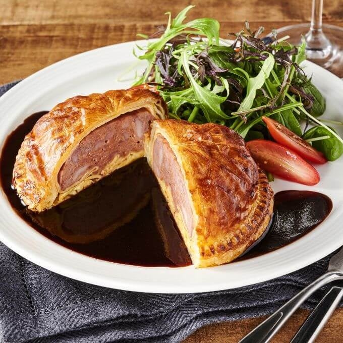 オーナーシェフ神谷英生氏が手掛ける、熟成肉とジビエ料理が評判の本格的なフレンチレストラン<ラ・ブーシェリーデュ・ブッパ>。みっちりと身が詰まった豚肉のパテから旨みがあふれる、ボリュームたっぷりのパイ包み焼きを焼き立てで赤ワインソースを添えてご提供いたします。