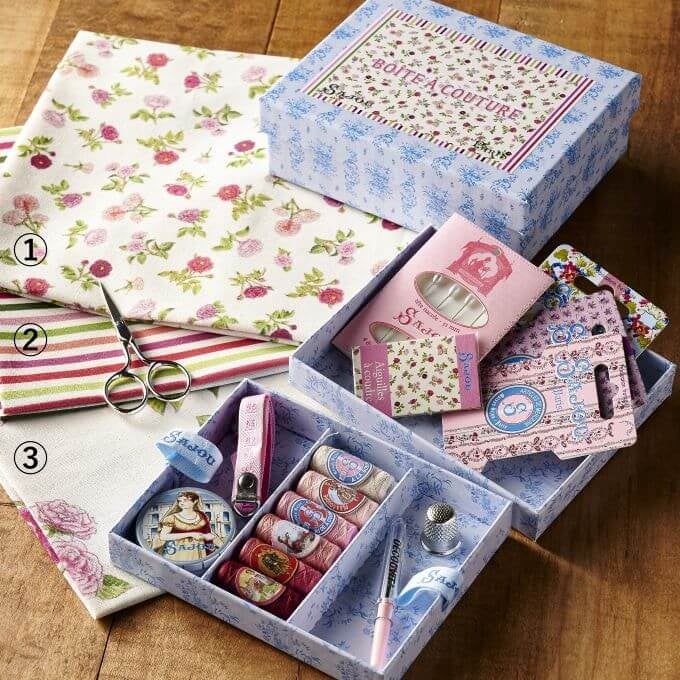 バラをモチーフにした華やかなソーイングボックスは、ナポレオン妃ジョゼフィーヌが大好きだったバラをイメージしデザインされたフランスの本店でも販売のない限定品。別売りで同柄のカット生地もございます。