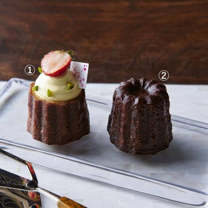 2016年、世界カヌレコンクール優勝。製菓コンクールの審査員も多数務めるフランス・ボルドーのシリル・サンニコラ氏のパティスリー。外はカリカリ&中はモチっと焼きあげたカヌレの内側をくり抜き、カスタードや生クリームと共にいちごソースとピスタチオペーストを閉じ込めた一品。旬のいちごを使ったクリーム入りカヌレは、「日本のお客さまのために」サンニコラ氏が考案した特別なカヌレです。