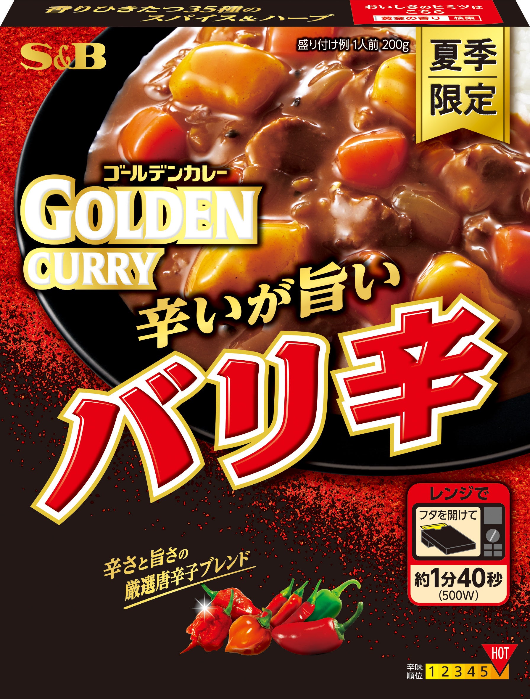 “辛いが旨い”をコンセプトとし、厳選した唐辛子とあら挽きブラックペッパーの鮮烈な辛みに、「ゴールデンカレー」ならではの35種のスパイスとハーブが織りなす豊かな香り立ちを付与した、キレと香りを楽しめるカレーです。