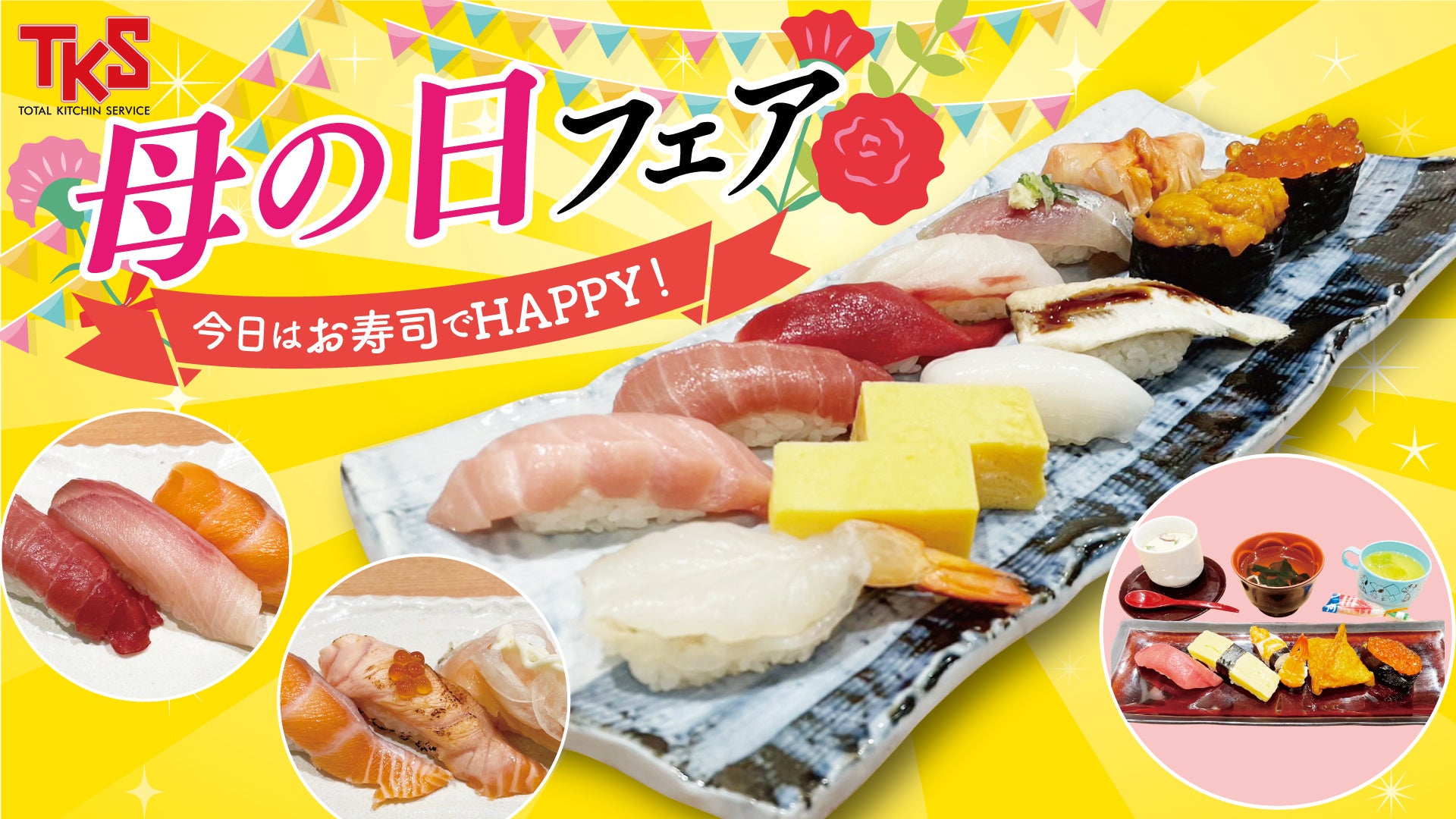 「寿司酒場 まぐろ人」「神保町すしわさび」や「沖縄料理なんくるないさー」などの飲食店を展開する株式会社ティーケーエスでは、運営する寿司業態の8店舗にて、絶品の江戸前寿司がお得に食べられる【母の日フェア】を開催中!