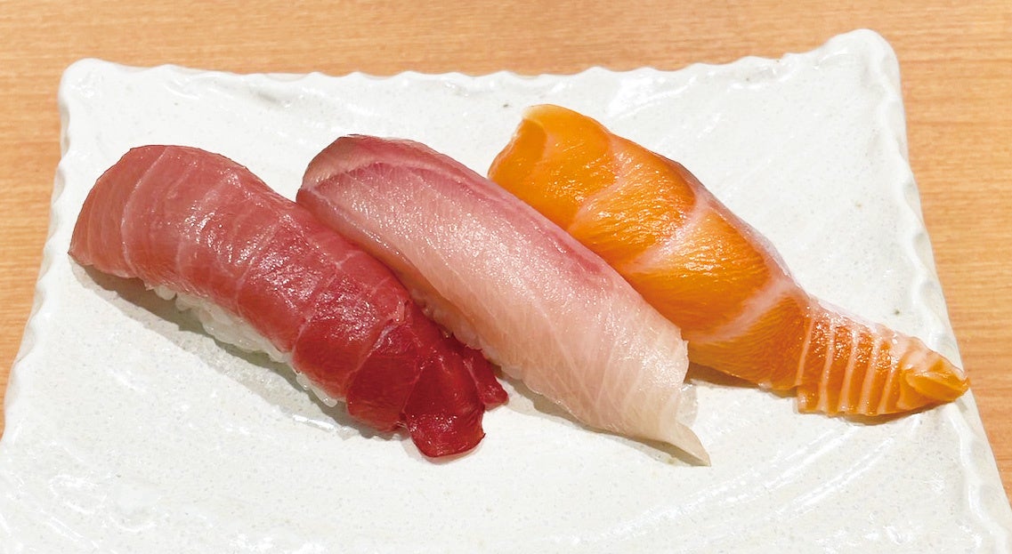また、見た目も華やかな中とろ、白身、ぼたんえび、うに、赤貝の盛合せ【ぜいたく5貫盛り】や、生とろサーモンやしゃぶしゃぶサーモンなど女性に人気のネタを盛り合わせた【サーモン大好き3貫盛り】、中とろ、ぶり、生とろサーモンを盛り合わせた【ゴールデン3貫盛り】はフェア限定商品となっております。