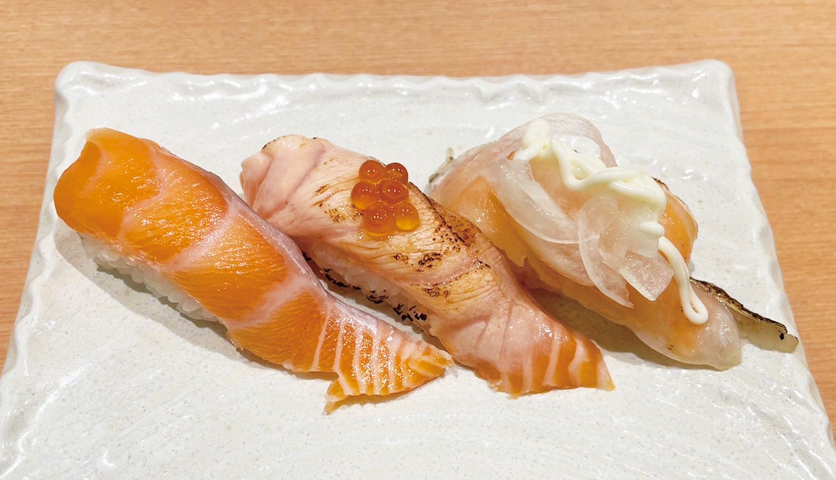 (生とろサーモン・しゃぶしゃぶサーモン・オニオンサーモン)