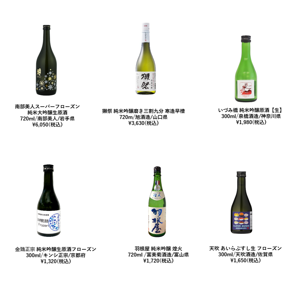 下記に掲載している銘柄を含め、36銘柄の生酒を「凍眠」凍結し、冷凍販売します。