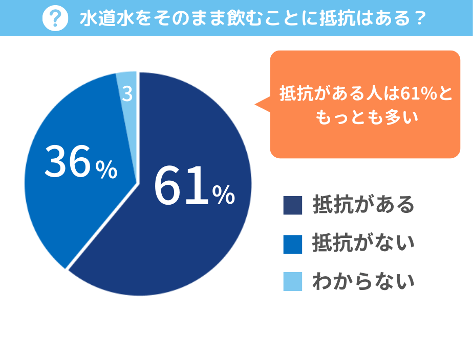 水道水をそのまま飲むことに抵抗がある人は全体の61%。