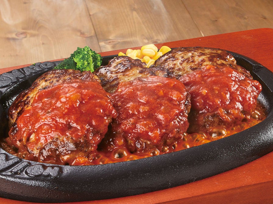 まろやかな味に加え、深みのある濃厚トマトソース。ジューシーなハンバーグがトマトの酸味と甘味を引き立てます。