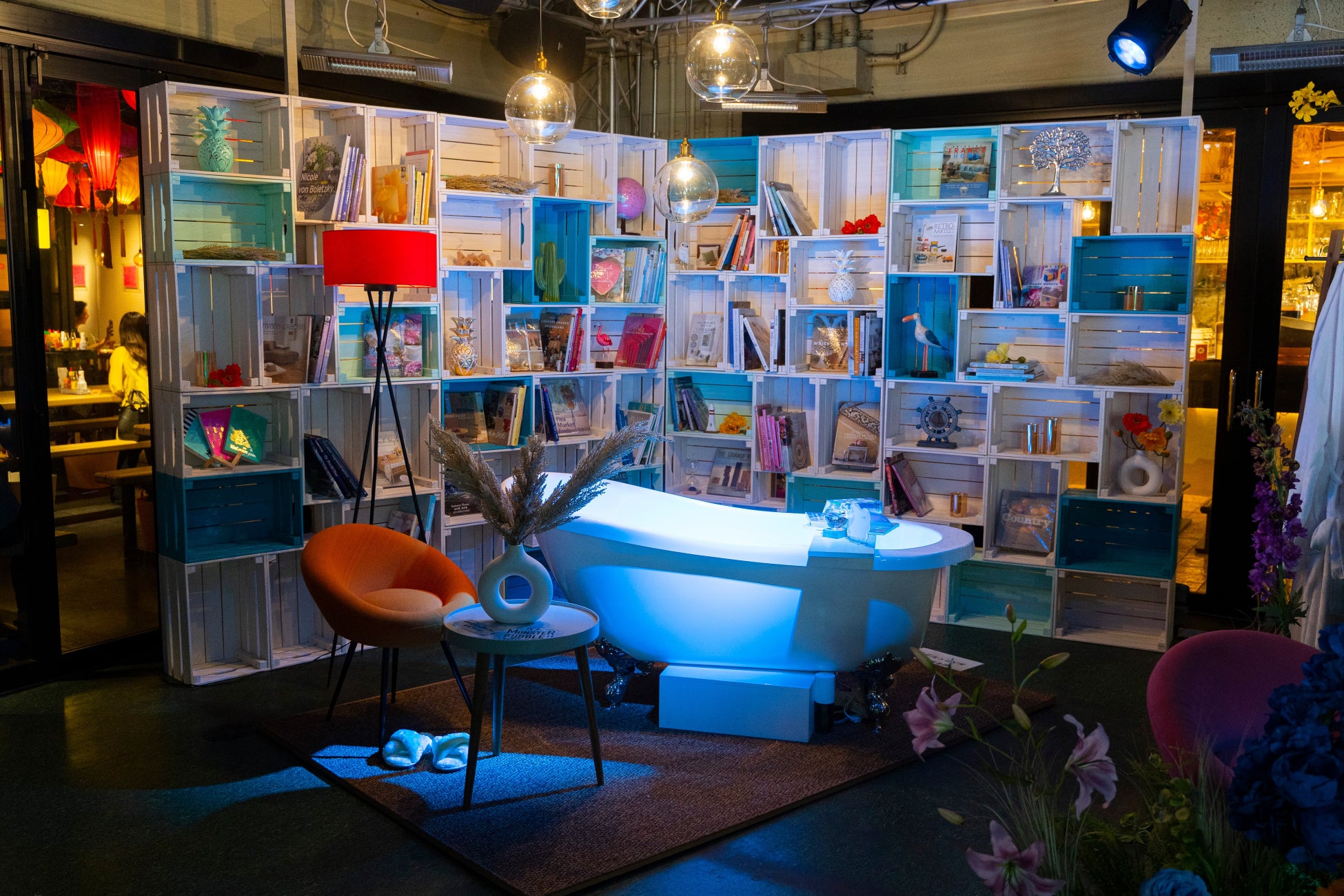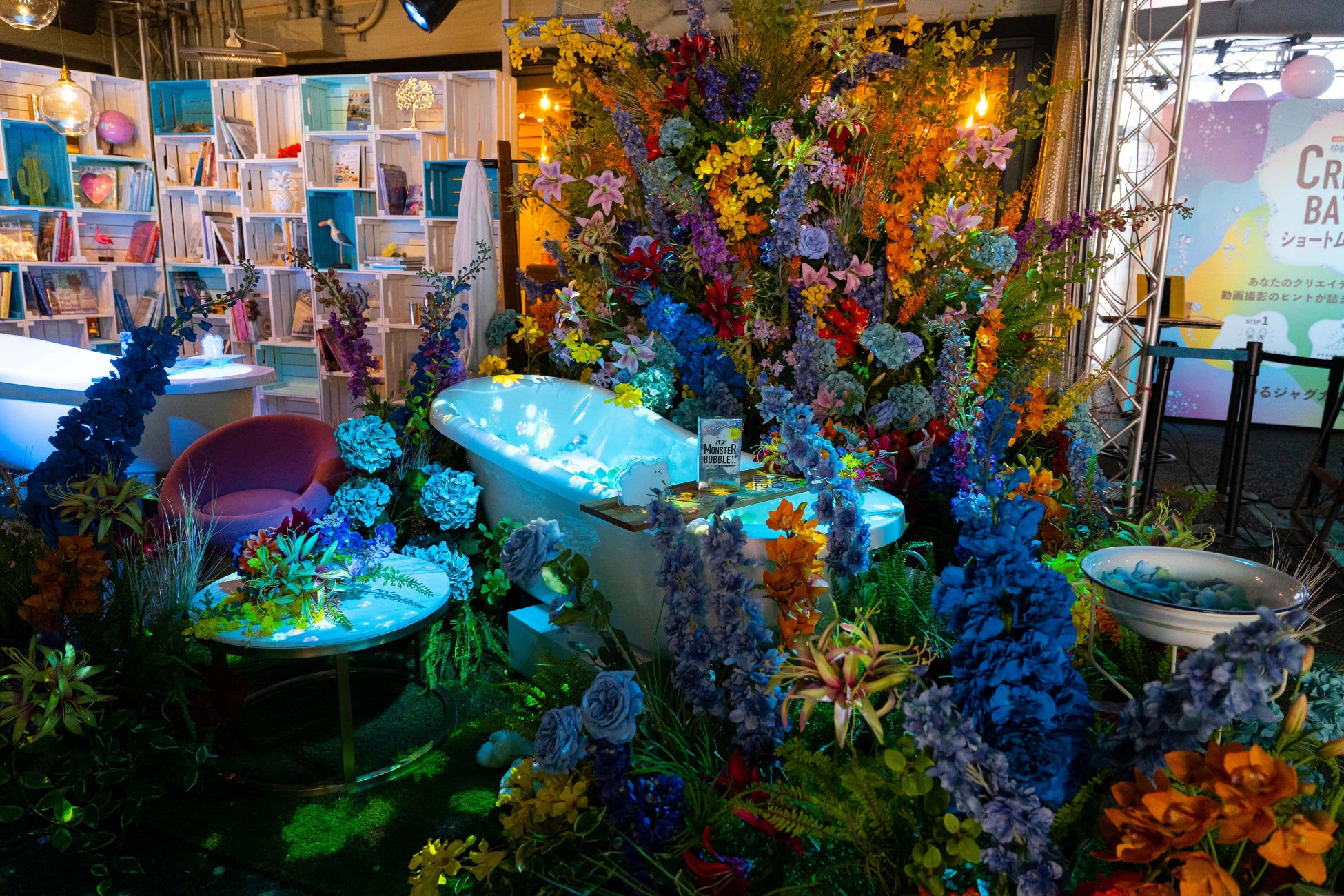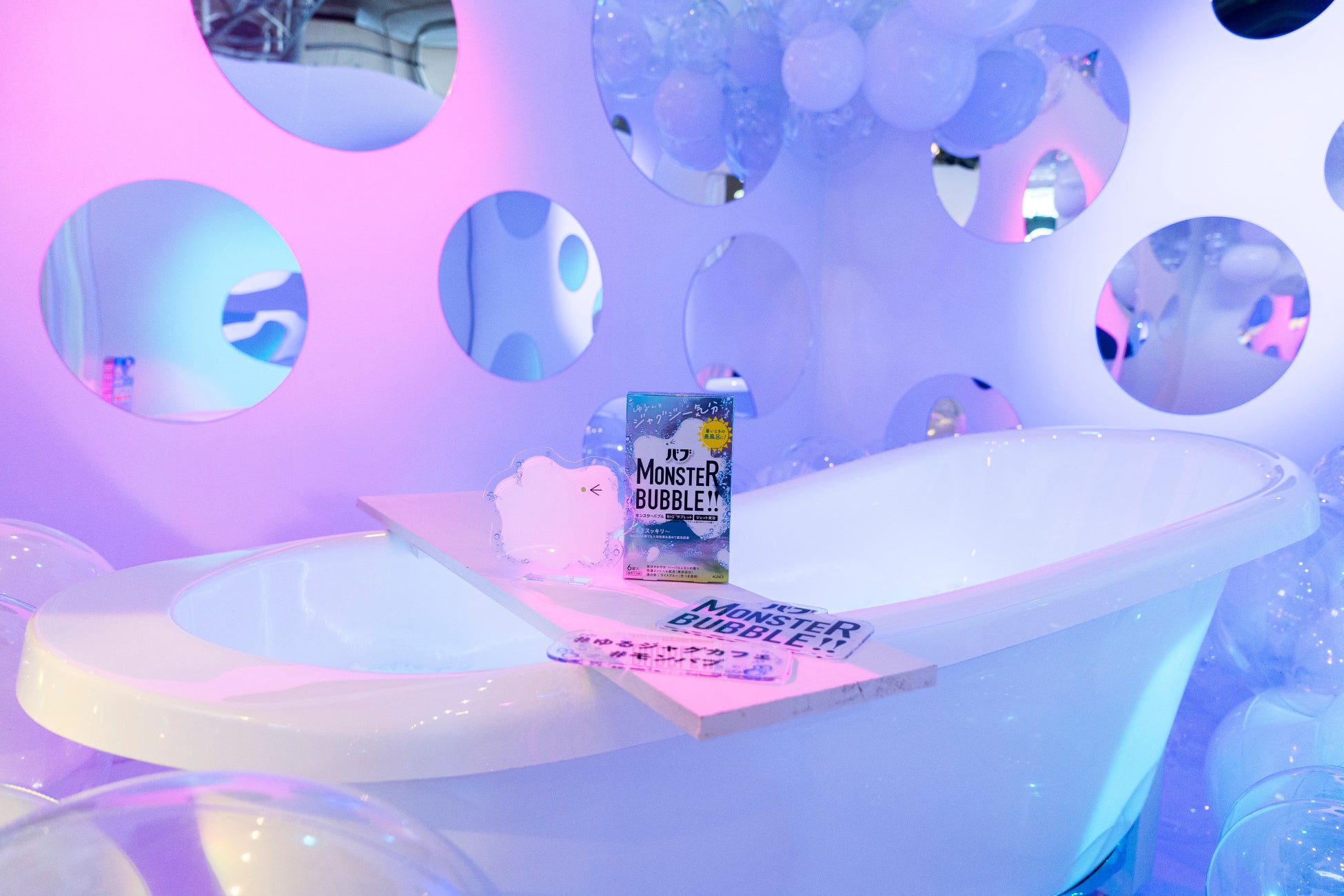 「ゆるんとジャグジー気分Café」は、会場内に設置されたバスタブに入りながら、ゆるんと長~く心地よいオフロ時間を疑似体験できる、期間限定の体験型イベント。新商品である『バブ MONSTER BUBBLE ゆるんとジャグジー気分』をイメージしたオリジナルの香りや、『バブ MONSTER BUBBLE』の炭酸ガスの発泡音をベースにしたチルミュージック、カフェドリンクなどを組み合わせ、本商品のコンセプトや「こんなオフロがあったらいいな」を体験できる空間を実現。イベント参加者の皆さまに「ゆるんとジャグジー気分」の世界をお楽しみいただきました。