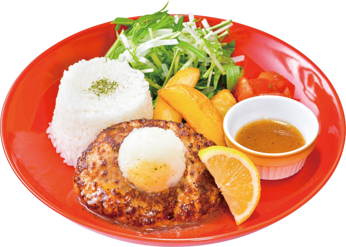 また、“健康グリルプレート”をご注文のお客様は、+500円(税込550円)で追加ハンバーグ(140g)をご注文いただけます。さらに+100円(税込110円)でライスをもち麦入り黒米へ変更できます。