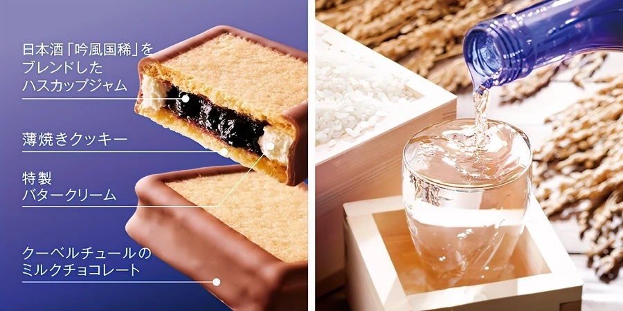 北海道特産の果実である「ハスカップ」は、希少性の高さと群青色の見た目から‟青の宝石″のような輝きを放ちます。この実で作るジャムとバタークリームを薄焼きクッキーでサンドした、もりもとのロングセラー商品「北のちいさなケーキ ハスカップジュエリー」に北海道の寒冷な大地が育んだみずみずしい味わいの日本酒「吟風國稀」を掛け合わせた「ハスカップジュエリー稀の芳醇~日本酒仕立て~」が完成いたしました。