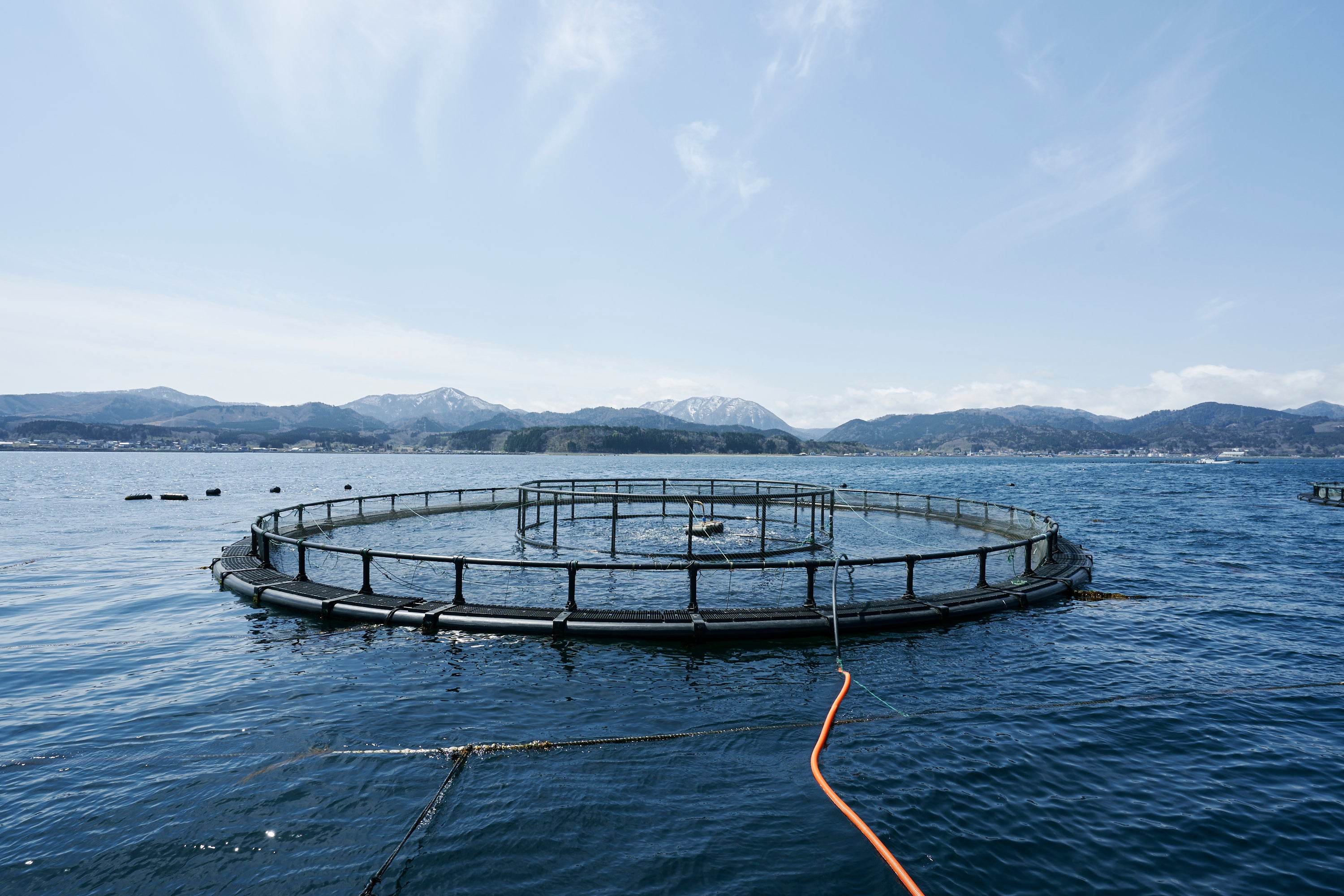 青森県の自然豊かな環境で大規模サーモントラウト養殖に取り組んでいます。卵の孵化から手掛け、湧き出た流水の中で育った稚魚は、最後に潮の流れが速い津軽海峡に広がる海面で大きくなり、身が引き締まり上品な脂のりのサーモンに成長します。また、日本の養殖業の未来に目を向け、自然環境や地域社会に配慮していることを示す国際規格「ASC認証」を一部取得しています。