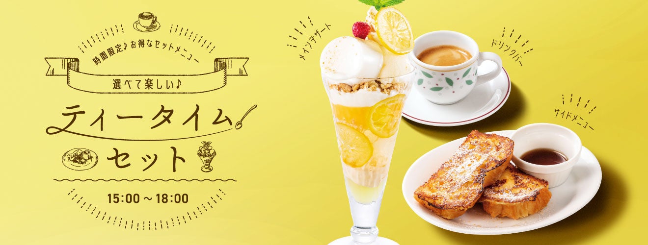 今年は、390円~とお手頃な価格でのラインナップです。レモンのソルベ、クリーム、ゼリーなどレモンをじゅうぶんに堪能できるサンデーは1,000円以下でご提供します。食後にも食べやすいミルクプリンパルフェや、ちょこっとパルフェ、また、なめらかな口当たりとさわやかなレモンの相性が抜群のチーズケーキを揃えました。さらに、15:00-18:00限定販売の「ティータイムセット」のデザートもレモンに変更しました。お客様のご利用シーンに合わせてお楽しみください。