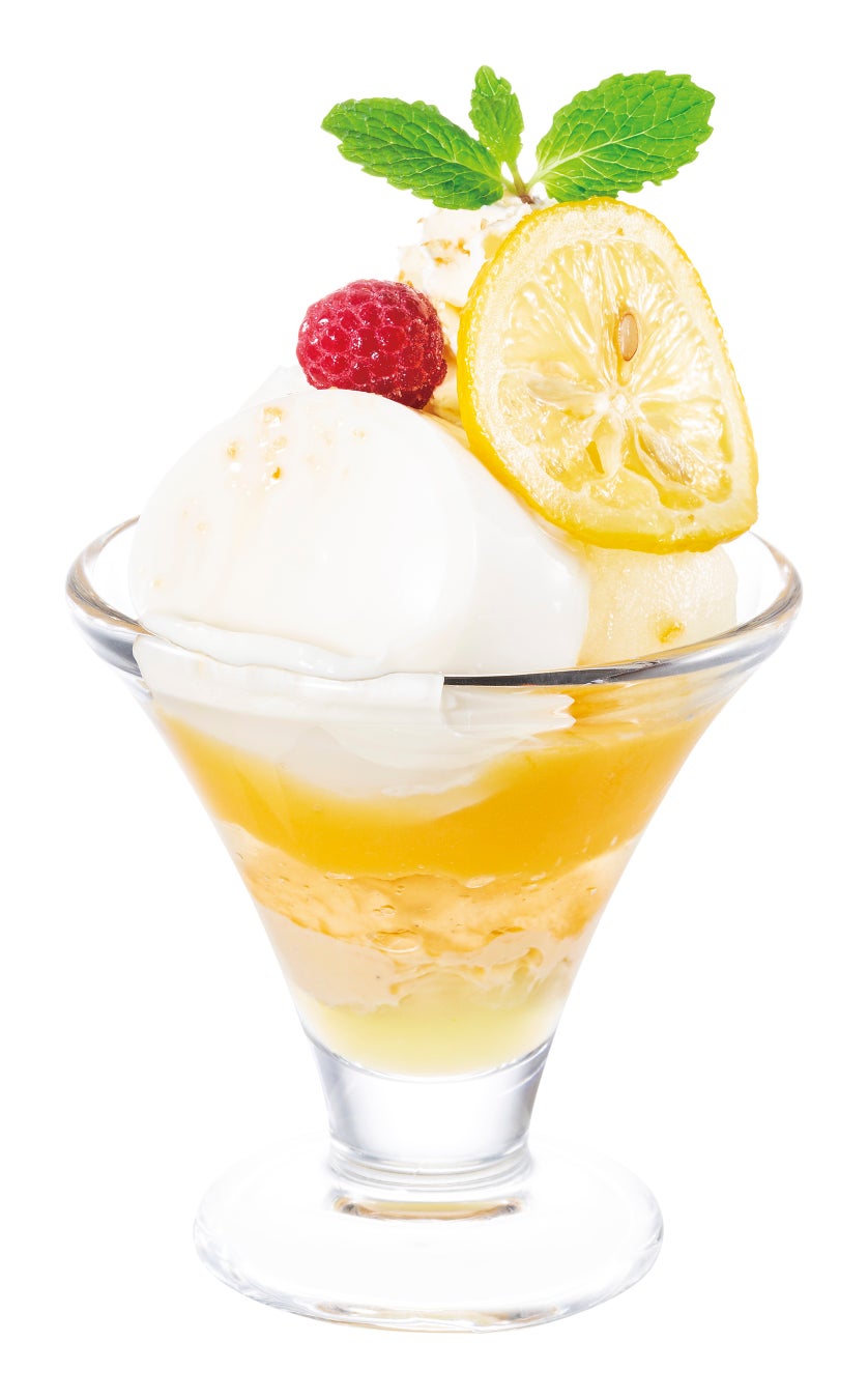 みずみずしいレモンの香りとレモンイエローの色合いが、夏の訪れを感じさせるザ・サンデー! すっきりとした後味のレモンチーズクリームや、心地よい酸味のレモンカードをはじめ、ソルベ、ゼリー、ソースと、レモンづくしのデザートです。スライスしたレモンは、はちみつシロップ漬けに。そのまま味わうのはもちろん、アイスやクリームと合わせると、やさしい甘味とさっぱりとした余韻が広がります。気温が上がるこの季節、爽やかなレモン