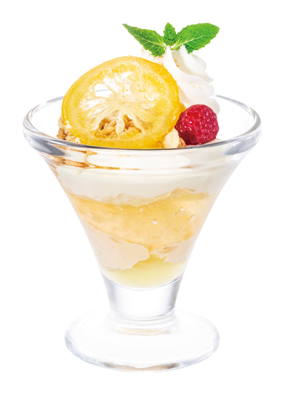 すっきりとした甘さと、ちょこっとサイズがうれしい、はちみつレモンのお手頃パルフェ。なめらかなレモンチーズクリーム、ふるふるとした食感のレモンゼリー、フルーティーなレモンソースなどを組み合わせて、風味満点のグラスデザートに仕立てました。グラノーラのざくざくとした食感も軽やかなアクセント。はちみつのやさしい甘さが広がるシロップ漬けのレモンとともに、爽やかな味わいをお楽しみください。