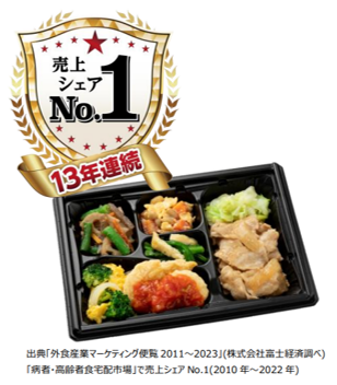 ※「病者・高齢者食宅配市場」で売上シェアNo.1(2010~2022年)出典 「外食産業マーケティング便覧2011~2023」(株式会社富士経済調べ)
