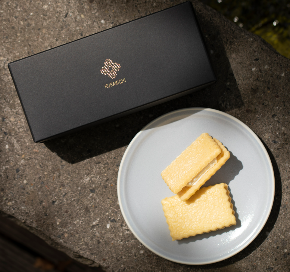 発酵バターを使用したバタークリームに、はちみつを混ぜ、タルト生地でサンドしました。