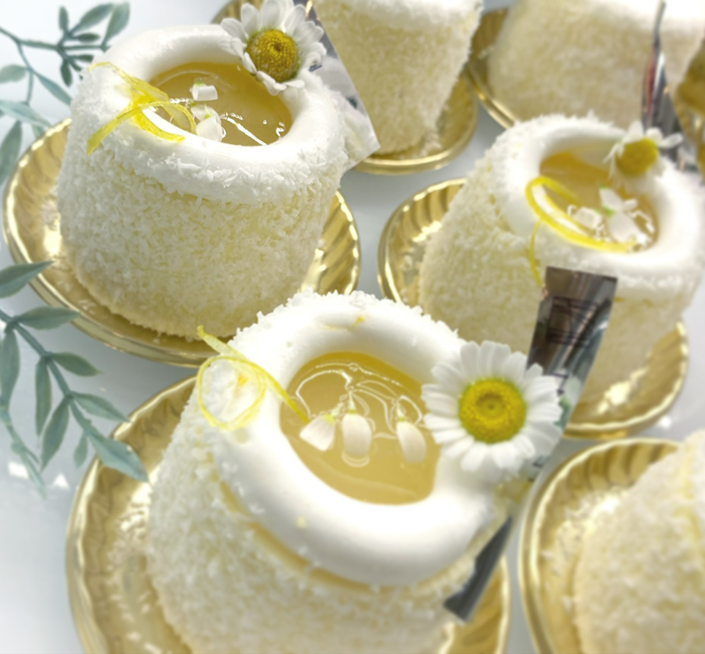 カモミールのやさしい香りにさわやかな小夏と銀座はちみつを合わせた初夏をイメージしたケーキです。